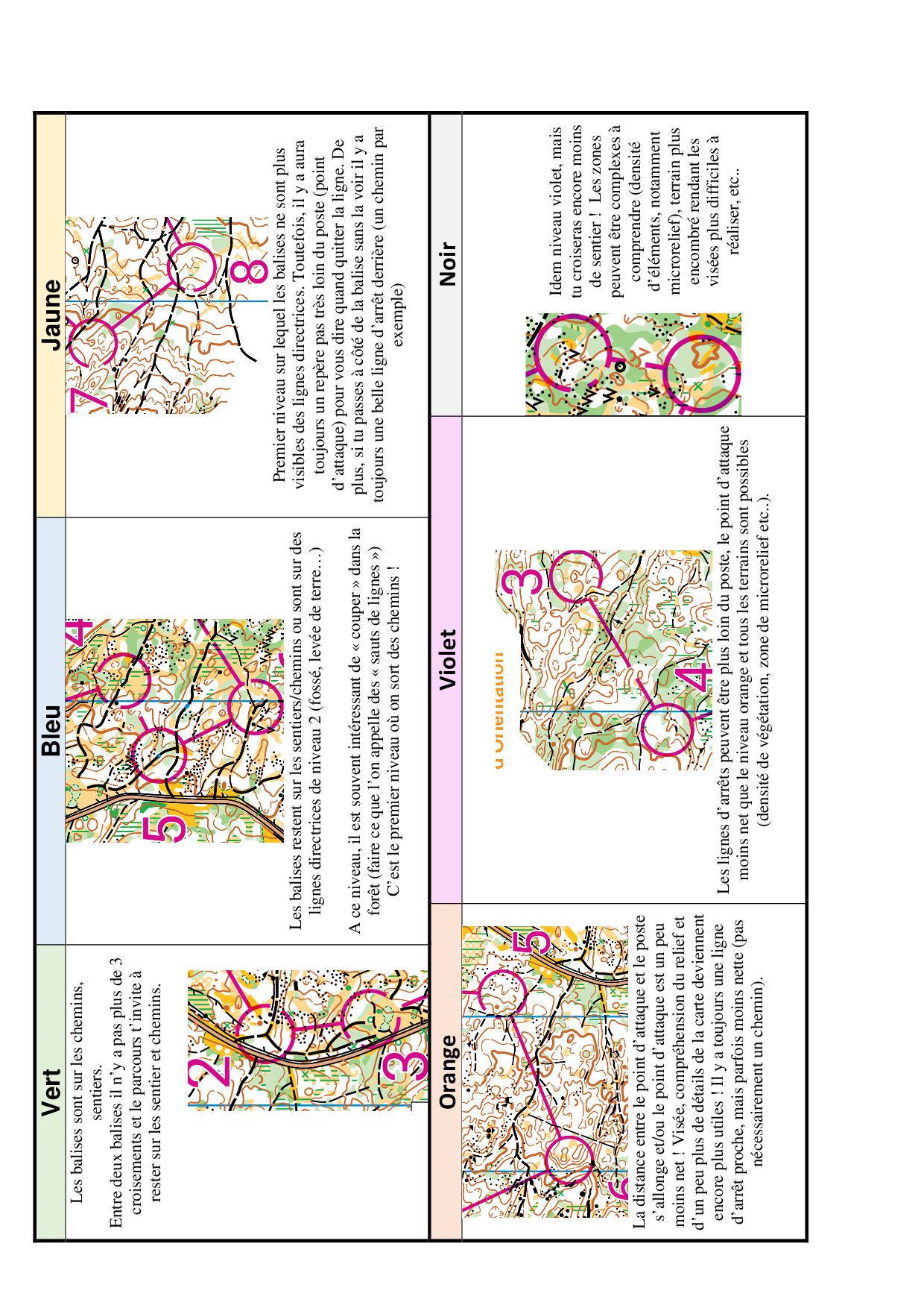 Lors des courses vous ne choisirez pas le format (c'est l'organisateur qui propose!) mais par contre vous choisissez la couleur! En france, tous les circuits ont un niveau de difficulté qui respecte la méthode fédérale. N'hésitez pas à demander conseil, mais pour vous aider à comprendre en voici un bref résumé :